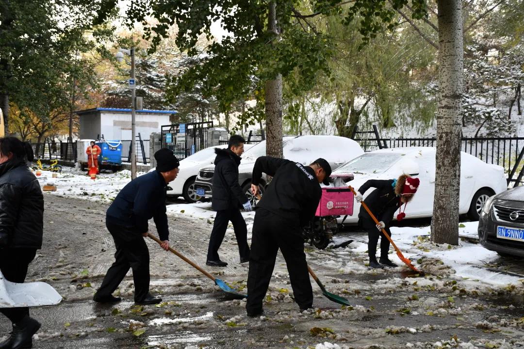 入冬的第一場雪,伴隨著寒風如約而至。飄雪就是號令,北服后勤基建處職能科室迅速行動起來,組織四家專業保潔單位,揮舞著鐵鍬、鐵鏟、推車、笤帚用具,奮戰在櫻花園校區和芍藥居校園的主要通道、廣場上。