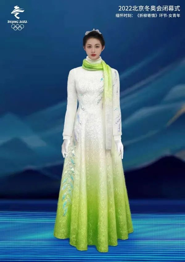 集合了中國古典意象之美的“折柳寄情”成為閉幕式上最讓人印象深刻的環(huán)節(jié),一曲悠揚(yáng)的《送別》讓這無言的告別時刻盡顯東方式的浪漫審美。習(xí)景凱對這一環(huán)節(jié)服裝設(shè)計靈感來源于中國人對緬懷獨(dú)有的思考:“圍繞著一曲‘長亭送別’的旋律,萬千生命的‘靈’與‘念’化身為春日里的柳樹精靈,她們舞步翩翩,輕柔且夢幻。仿佛展開了一個浪漫又唯美的畫卷,是極具民族深情且浪漫的一種中式的風(fēng)格表達(dá)。”