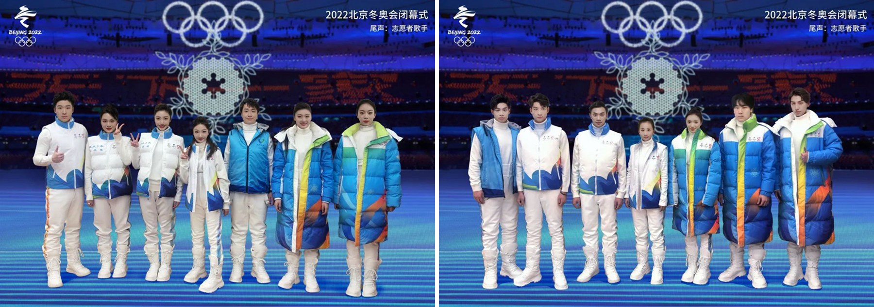 冬奧閉會幕式上每個環(huán)節(jié)的服飾設(shè)計都以雪花為主題,在簡潔、現(xiàn)代的設(shè)計基調(diào)之上,凸顯和升華了每個環(huán)節(jié)的主題與審美意境,為整個閉幕式的視覺呈現(xiàn)和文化輸出做出了令人擊節(jié)的藝術(shù)貢獻(xiàn)。