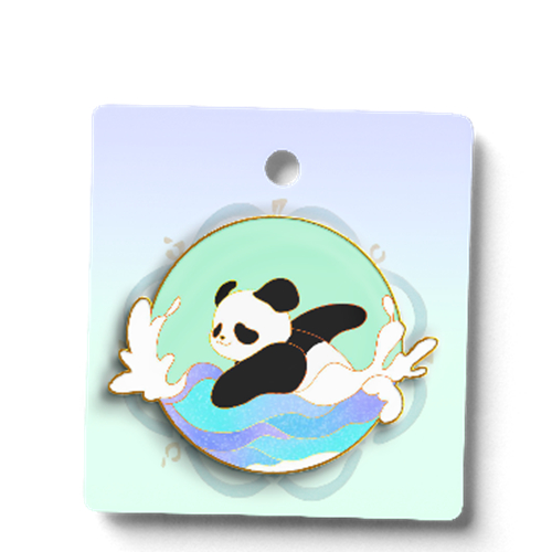 靈感來自于跳水、游泳、花樣游泳運動員的意向提煉,將三項運動各自動作與大熊貓形象相結合,融入飛濺的水花,以可愛的國寶形態展現中國運動員的生機與活力。