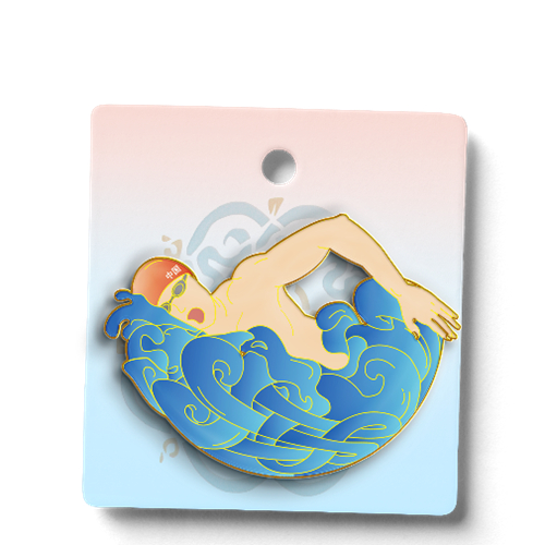 靈感來自中國盤長紋與游泳運動員的意向提煉,描繪游泳運動員在水中洶涌奮進的身姿,展現中國游泳隊的力量與精神面貌。
