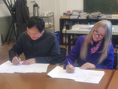 23日下午,代表團一行與安特衛普應用科學與藝術大學校方深入會談。校長Pascale女士對代表團一行到來表示歡迎。賈榮林介紹我校整體情況以及國際青年設計師邀請賽、國際首飾藝術展、設計馬拉松等各類國際品牌活動,向安特衛普應用科學與藝術大學發出活動邀請。皇家美術學院院長Johan Pas向團隊成員介紹所在學院9個專業情況、藝術教育基本情況和校企合作情況。雙方就國際合作工作營等事項進行深入探討并簽訂合作意向書;同時邀請皇家美術學院院長一行回訪北服。