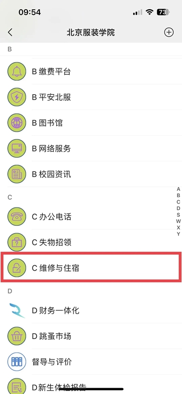 打開企業微信“北京服裝學院”,如下圖所示,點擊“維修與住宿”—“報修系統”—“我要報修”,開啟你的報修流程~