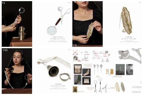 在大二時(shí)的一次藝術(shù)營(yíng)里,她的心中豁然開朗。2019年,孫匯澤參與了學(xué)校組織的Universal Vision項(xiàng)目——赴法國(guó)、西班牙的藝術(shù)和時(shí)尚活動(dòng)營(yíng)。參觀巴黎裝飾藝術(shù)博物館時(shí),她關(guān)注到一個(gè)展示由古至今珠寶首飾傳承與創(chuàng)新的展區(qū),展區(qū)用黑色布景營(yíng)造出莊嚴(yán)而厚重的氛圍,將古希臘、古羅馬時(shí)期直至現(xiàn)代的品牌珠寶分門別類陳列其中。射燈均勻排布在每一件展品之上,流淌著歷史長(zhǎng)河的星漢燦爛。“那一刻,我的心被觸動(dòng)了,好像是冥冥中注定的羈絆讓我們彼此連接。首飾承載的不僅僅是設(shè)計(jì)、理念,更有屬于歷史與文化的印記。我也想做出這樣的首飾,我就是想成為一名‘首飾人’!”