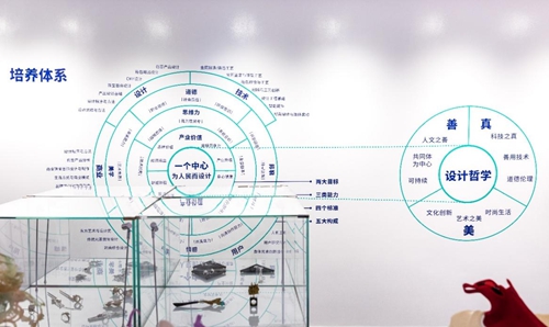 “專業發展展望:現在與未來”展廳中展示學院人才培養體系,以及部分師生優秀設計代表作品,反映學院注重理論與實踐結合,培養具有創新思維和實踐能力的設計人才的成果;展現師生在探索新思路、新技術上的努力。