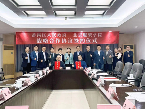 鄒游副院長與番禺區(qū)科工商信局黨組書記、局長石巍分別代表雙方簽署《番禺區(qū)人民政府與北京服裝學(xué)院戰(zhàn)略合作框架協(xié)議》。