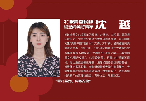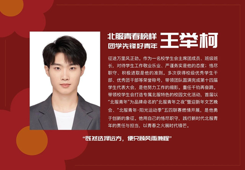 一代人有一代人的使命,一代人有一代人的擔當。一屆又一屆北服青年,以青春之聲接續奮斗,譜寫出一部閃光的青春奮斗史。今天,讓我們共同走近第九屆“北服青春榜樣”,領略北服青年的熱血與奮進、勇氣和擔當。