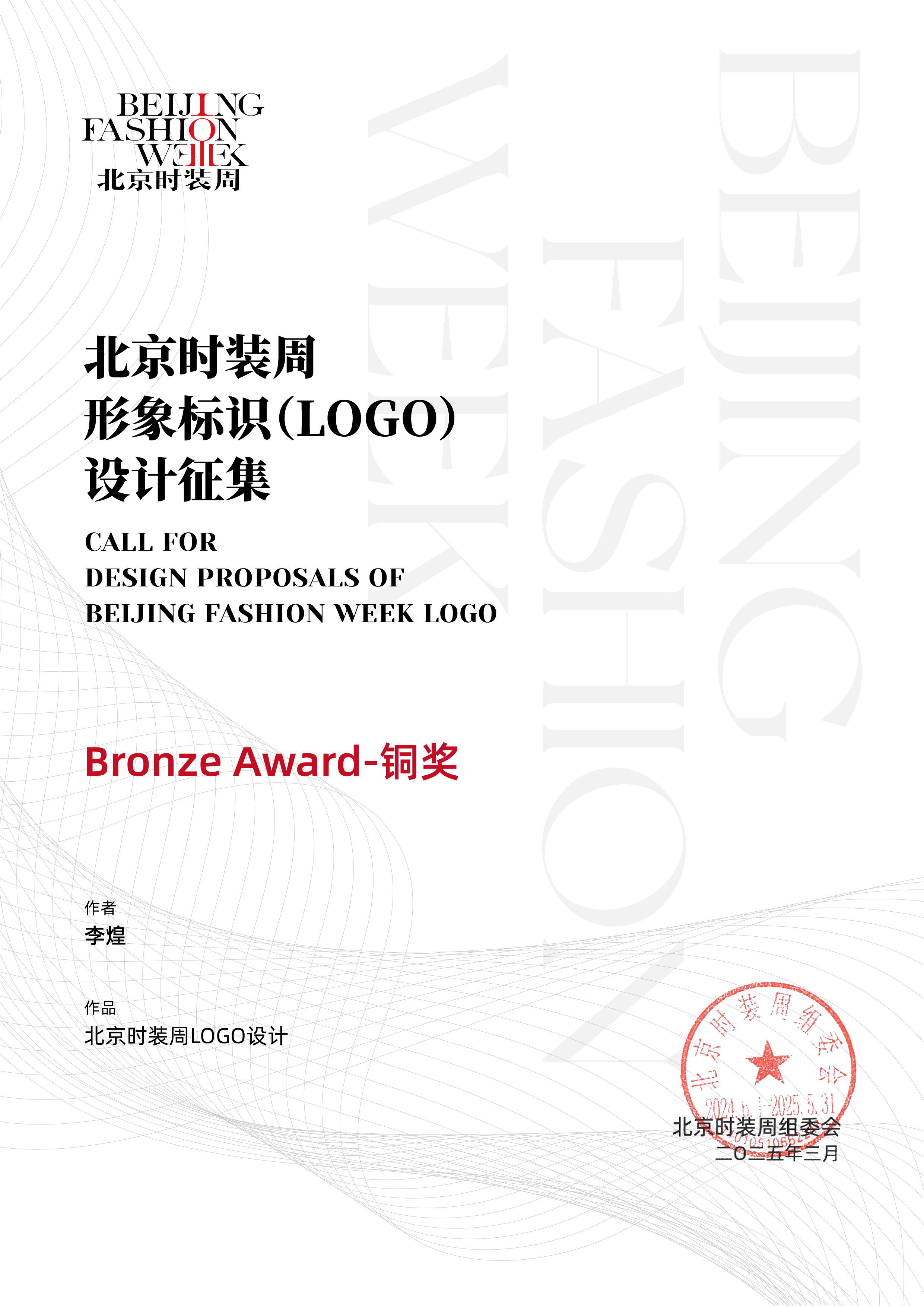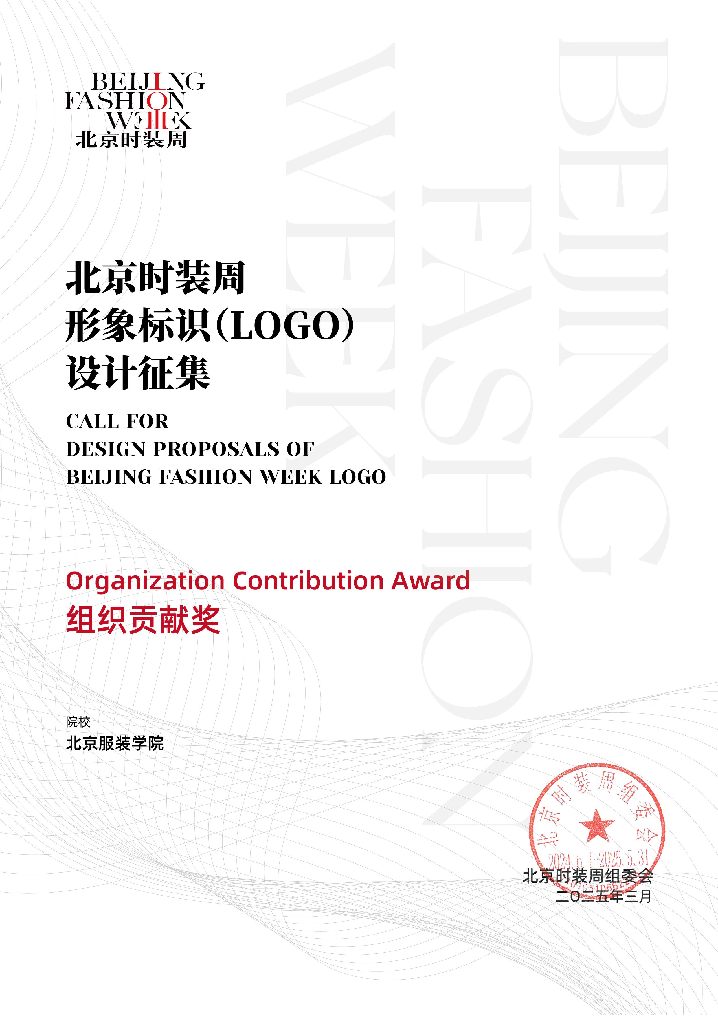 近日,由北京時裝周組委會主辦的“北京時裝周形象標識(LOGO)設計征集”活動落下帷幕。本次活動面向全國設計師及高校師生廣泛征集創意作品,經過多輪評審,北京服裝學院藝術設計學院教師李煌憑借獨特的創意與視覺表現力獲得銅獎,北校區組織工作獲得北京時裝周組委會高度認可,榮獲“組織貢獻獎”。