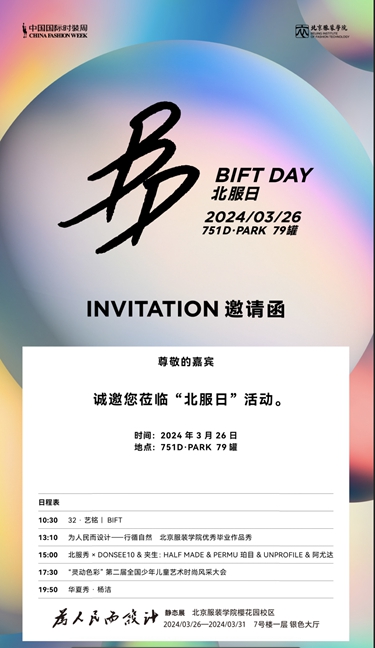 3月26日,作為北京服裝學院紀念辦學65周年系列活動重要內容,學校將攜手2024中國國際時裝周,首次在751D?PARK 79罐舉辦“北服日”。各界嘉賓、師生代表齊聚一堂,共同見證別開生面的時尚盛事。五場別出心裁的時裝秀演在751園區逐一上演,“為人民而設計”——北京服裝學院服務國家重大需求服裝設計成果展在北服藝術樓銀色大廳精彩亮相,呈現獨特的風格和主題,展現北服師生無限創意與才華,突顯時尚學府的教學成果,推動時尚產業的繁榮與發展。