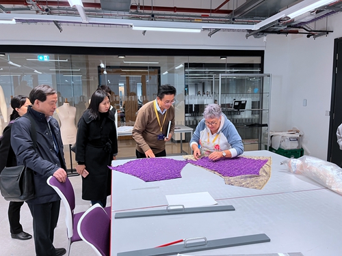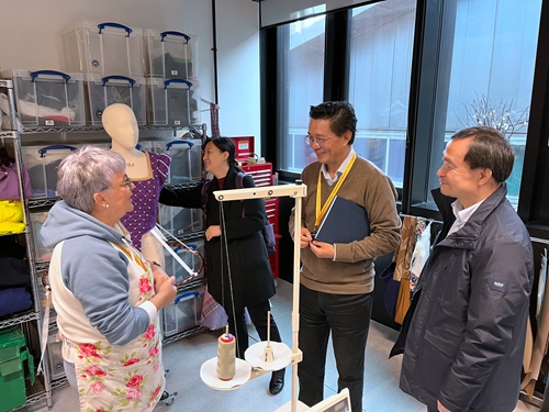 曼徹斯特大學即將迎來200周年校慶,我校服飾工程與設計學院黨委副書記蔣祿微、時尚傳播學院教授趙春華現場與校慶服裝設計師就選料、顏色、款式和工藝進行交流。