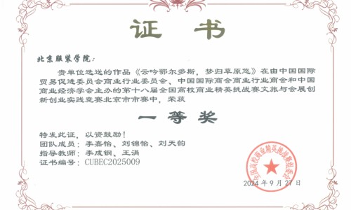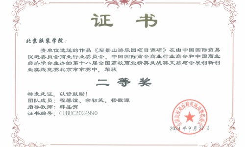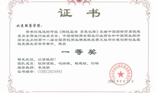 北京服裝學院商學院師生充分調研本賽事在學生專業實踐上的可行性,通過近一年的賽事調研與聯絡,在教務處的大力支持下,于2024年度首次申報獲批該學科競賽項目。北服師生在本賽事中首次嘗試便取得重大成果,激勵學生參與各類學科競賽的積極性,為學生提供展示自我與鍛煉能力的平臺。此次成績充分體現了學校在全面育人和創新創業教育方面取得的成效,對推動培養應用型、復合型和創新性人才培養起到了顯著的促進作用。