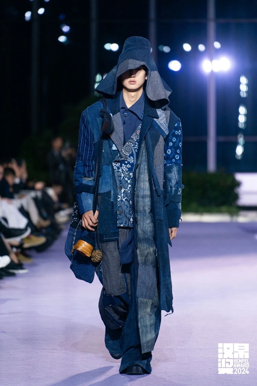 設(shè)計(jì)靈感來(lái)源于陳旭展在貴州田野考察中對(duì)少數(shù)民族文化的感悟。他從苗寨中的村民、收藏家手里收集了眾多面料,包括古老織機(jī)織成的格紋和土布面料、貴州布依族手工藍(lán)染面料、饒家“千年被”和經(jīng)過(guò)加工的蠟染和繡片等。他運(yùn)用新的時(shí)裝語(yǔ)言對(duì)這些傳統(tǒng)面料進(jìn)行二次創(chuàng)作和呈現(xiàn),用耳目一新的設(shè)計(jì)展現(xiàn)了民族文化的力量。