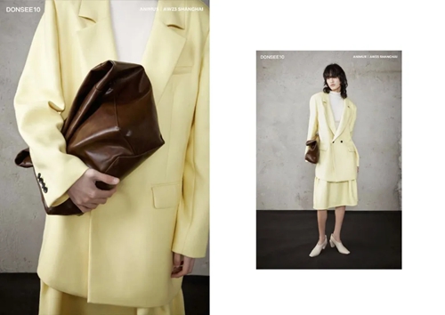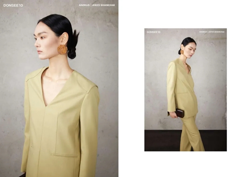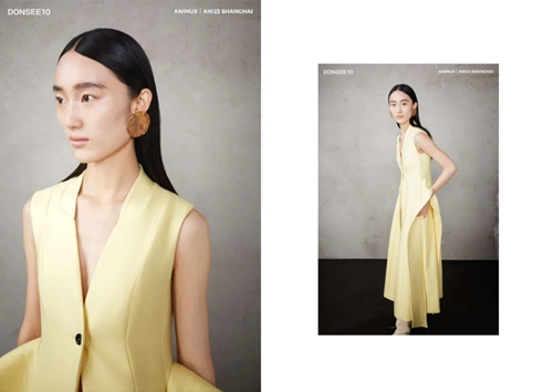 北服2014級校友、DONSEE10主理人陳丹琪作為95后女性設計師,其作品風格簡潔利落,融合東西方文化特質。通過對廓形和色彩的敏銳眼光,她將自然生活的美轉化為設計語言,探索服裝與身體形成的呼吸廓形,為可持續時尚發聲。
