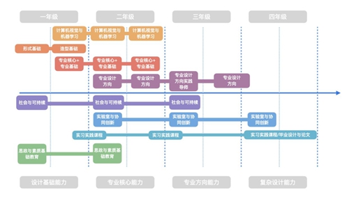 分別從“深度、強度、廣度”三個維度加強學科深度、強化專業基礎、拓寬專業方向,形成“設計理論與方法”“形式與表達”“新工科基礎”“設計文化與社會系統”“設計核心與專業基礎”“模塊專屬與領域方向”六大課程版塊。筑牢根基,開發面向未來的設計師基礎課程平臺。