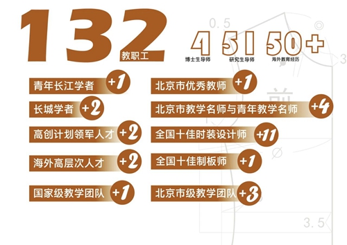 學院圍繞國家發展戰略、北京“四個中心”建設和紡織服裝及文化創意產業發展需求,依托首都的文化資源和時尚創意產業優勢,進行學科和專業布局。目前擁有2個二級學術碩士學位授權點、1個專業碩士學位授權點,其中依托設計學、紡織科學與工程兩個一級學科,設有服裝藝術設計、服裝設計與工程等多個研究生專業與研究方向;學院現有兩個本科專業——服裝與服飾設計專業和服裝設計與工程專業,以及3個實驗班。