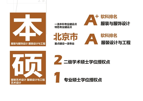 經過多年建設,設計學在第五輪學科評估中取得重大突破,并于2024年獲得博士學位授權資格,形成本碩博一體化培養模式。服裝與服飾設計、服裝設計與工程兩個專業均為國家級一流本科專業建設點、國家級特色專業建設點和北京市重點建設一流專業,在軟科排名中分別為A+和A類專業。
