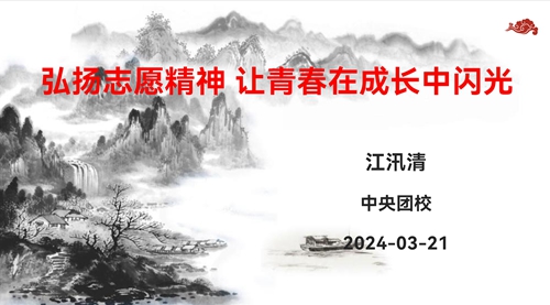 江汛清老師在分享中聚焦“為什么要弘揚(yáng)志愿精神”“中國(guó)青年志愿者的成長(zhǎng)壯大”“做好志愿者需要關(guān)注的問題”三方面,對(duì)內(nèi)在的志愿精神涵養(yǎng)到付諸實(shí)施的志愿行動(dòng)進(jìn)行闡述。她講到,共青團(tuán)組織應(yīng)更好地把青年一代團(tuán)結(jié)凝聚在黨的周圍,為推進(jìn)強(qiáng)國(guó)建設(shè)、民族復(fù)興偉業(yè)做出貢獻(xiàn)。