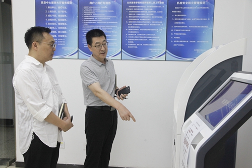 6月18日上午,副院長(zhǎng)鄒游來(lái)到信息中心調(diào)研檢查并指導(dǎo)工作。在信息中心主任李雪飛、副主任強(qiáng)凱陪同下,對(duì)數(shù)據(jù)中心機(jī)房、網(wǎng)絡(luò)信息線下服務(wù)大廳、音視頻編輯室、多媒體監(jiān)控室及各科室進(jìn)行了實(shí)地走訪,并與一線工作人員進(jìn)行了親切交談。李雪飛對(duì)信息中心工作做了全面匯報(bào)。