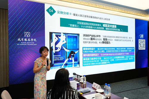福州大學廈門工藝美術學院服裝系危希曦老師,從人因工效學角度切入,進行題為《人因工效學在服裝研發與設計方向的產業應用》的報告。危希曦闡述該學科在服裝研發與設計中的重要作用,強調其在提高服裝舒適度、安全性以及生產效率、行業創新方面的重要性。通過實例分析,闡述了服裝人因工效學在產業鏈中的應用,展望人因工效學對未來服裝產業可持續發展的深遠影響。
