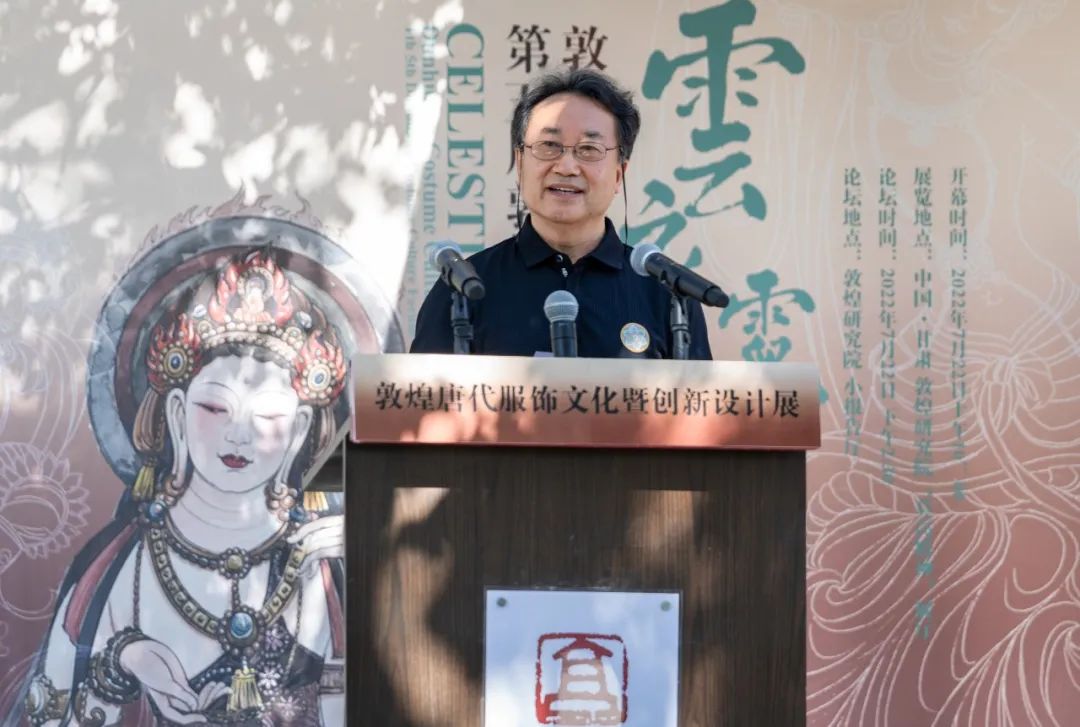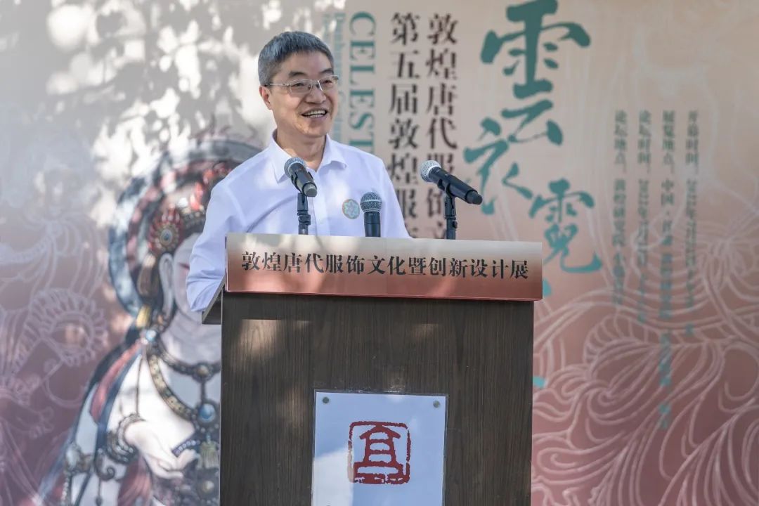 開幕式伊始,趙聲良書記致辭,他代表敦煌研究院熱烈歡迎各位領導、專家、同學的到來。他特別提到敦煌服飾文化研究是敦煌學重要的組成部分,希望展覽能夠更好地傳承和弘揚敦煌文化藝術的魅力,把敦煌服飾文化研究引向深入,同時通過創新設計為社會服務,令敦煌文化更有活力。