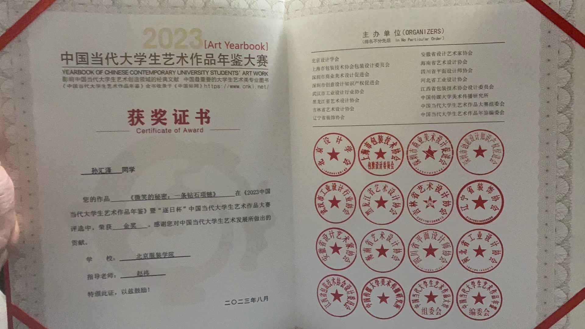 孫匯澤同學《微笑的秘密—一條鉆石項鏈》作品及獲獎證書