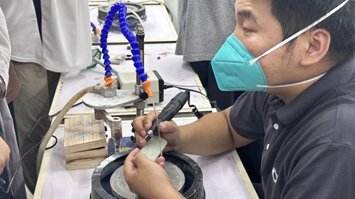講座伊始,楊根連大師便從自身學藝經歷講起,強調尊師重教在玉雕藝術傳承中的重要性。在學藝過程中,始終保持著對師傅的敬畏之心,虛心學習,刻苦鉆研,不斷將師傅技藝精髓內化于心,外化于行。楊大師話語中透露出對師道的尊重與感激,也讓同學們深刻認識到,在任何藝術領域,尊師重教都是推動藝術傳承與發展的重要力量。