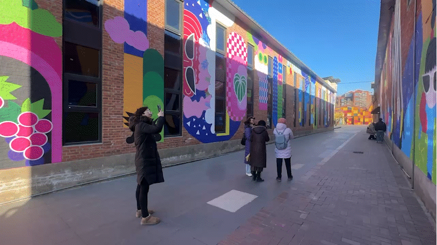 此次設計聚焦城市生活,圍繞龍徽葡萄酒文化特色,運用時尚化、潮流化設計手法,將運動、觀光、休閑等極具生活氣息的場景作為創作素材,通過墻體藝術和裝置藝術形式巧妙地融入園區公共空間。系列藝術作品顯著提升了園區空間品質,更為周邊居民帶來了全新生活體驗,讓古老廠區在城市更新浪潮中重新煥發出勃勃生機,處處洋溢著青春活力與時尚氣息。