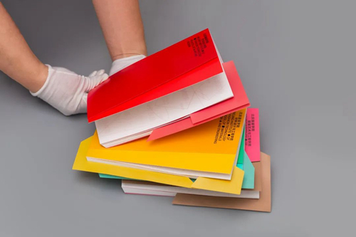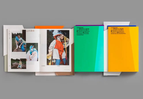作品集分冊依據學院劃分,8個二級學院8套專屬色彩。開本也在合理利用紙張的前提下,做了橫向或縱向的尺寸微調,8種尺寸各具特色,疊加五彩繽紛的折頁效果,更顯錯落有致。