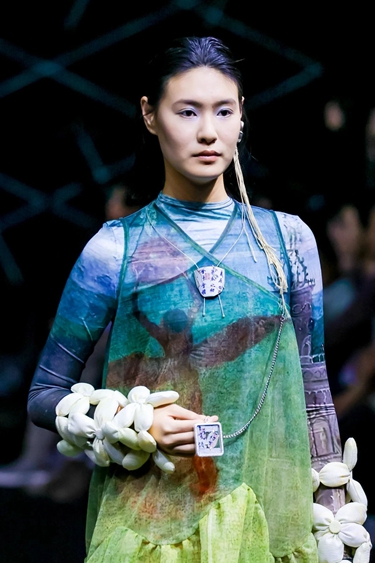 虛擬時尚專業(yè)方向畢業(yè)生積極與行業(yè)合作,共設(shè)置三個畢業(yè)設(shè)計主題——“未來閱讀與數(shù)字文旅”“未來時尚與數(shù)字人”“非遺數(shù)智編譯與未來時尚躍遷”。畢業(yè)生依托新質(zhì)技術(shù)工具,持續(xù)挖掘傳統(tǒng)工藝,探索未來時尚商業(yè)價值模式,實現(xiàn)對未來生活的數(shù)字化暢想。