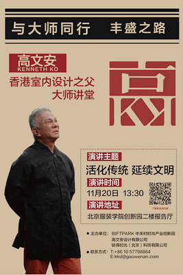 11月20日,“香港設(shè)計之父、知名企業(yè)家、勵志正能量大使”高文安先生親臨北京服裝學院創(chuàng)新園BIFTPARK大師講堂傳道,授業(yè),解惑,聊聊中國設(shè)計的那些事兒。