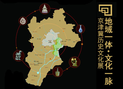 地點:首都博物館地上一層B展廳習近平總書記指出:“北京、天津、河北人口加起來有1億多,土地面積有21.6萬平方公里。京津冀地緣相接、人緣相親,地域一體、文化一脈,歷史淵源深厚、交往半徑相宜,完全能夠相互融合、協同發展。”這段話深刻揭示了京津冀協同發展的內在聯系,也正因為有如此密切的聯系,京津冀地區自古以來就形成了相互協作、共同發展的顯著特點,正是這種相互促進、相互協作精神,使京津冀地區具有了巨大經濟活力,在歷史上也取得了輝煌成就。