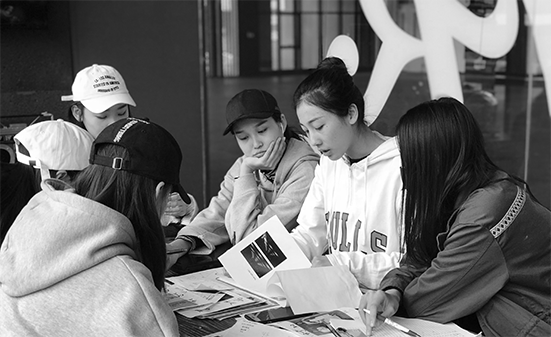 編導(dǎo)組的同學(xué)在討論方案