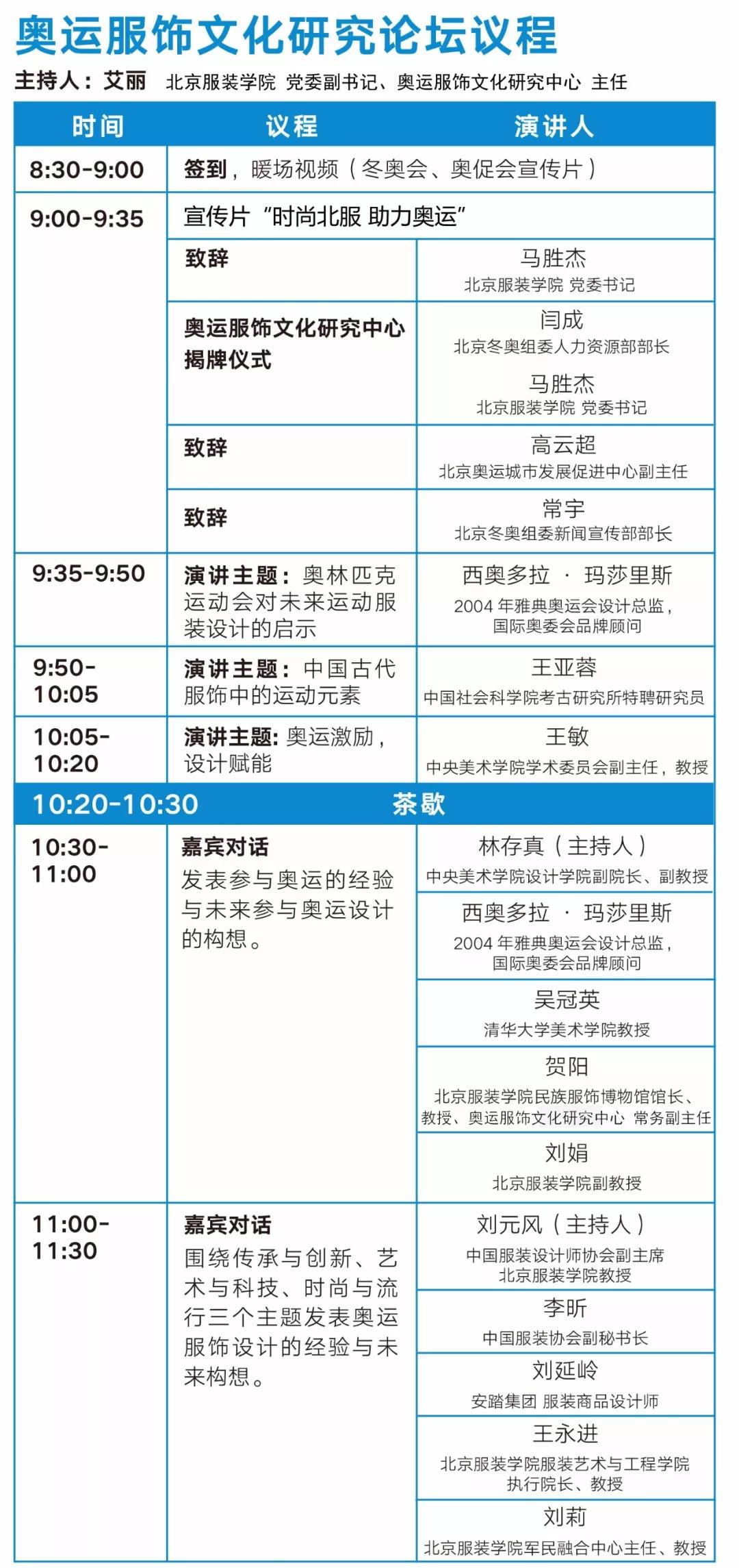 以下為“奧運服飾文化研究中心”揭牌儀式暨“奧運服飾文化研究論壇”日程: