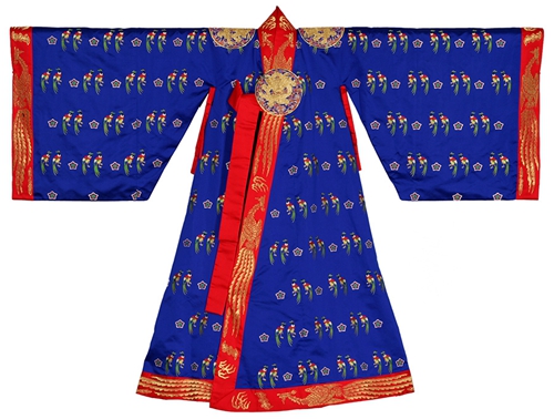 衣服除了蔽體擋寒的功能之外,還有著區分社會性地位,展現個人喜好,在共同體中表達禮儀等作用。衣服的顏色能彰顯民族傾向,象征階級和權威。這次展出的服飾是宮中的男女禮服、官服等禮儀場合著裝。
