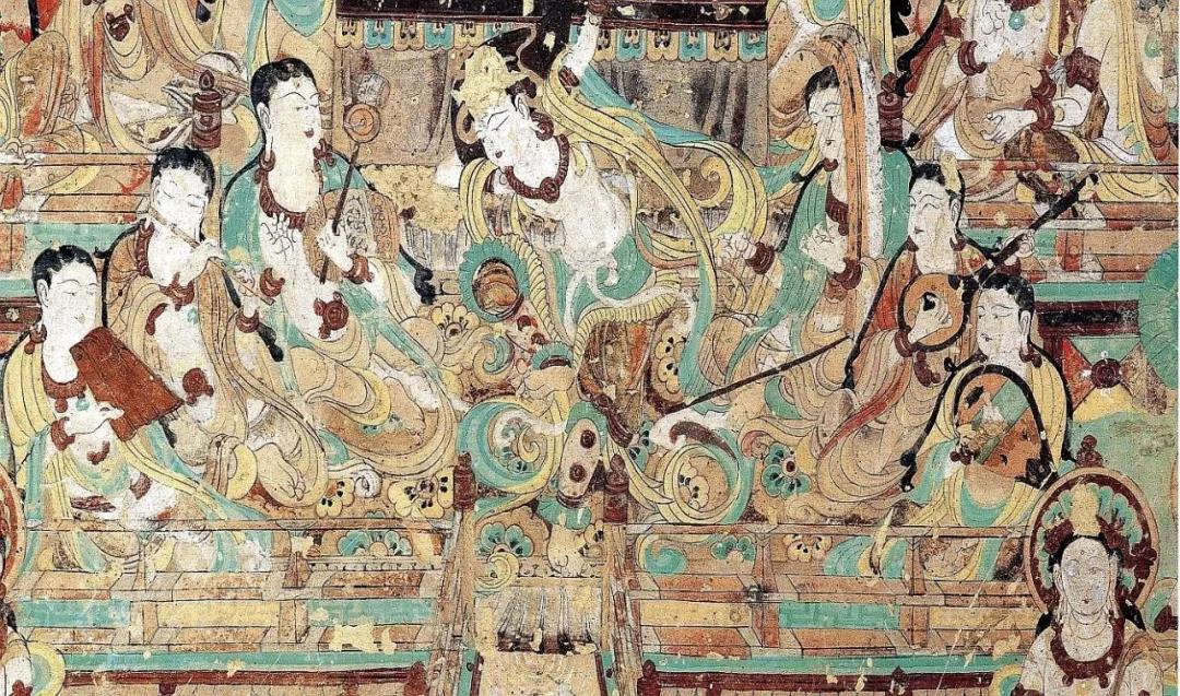 ▲設(shè)計(jì)靈感來(lái)源:敦煌莫高窟 中唐 第112窟 觀無(wú)量壽經(jīng)變·舞樂(lè)