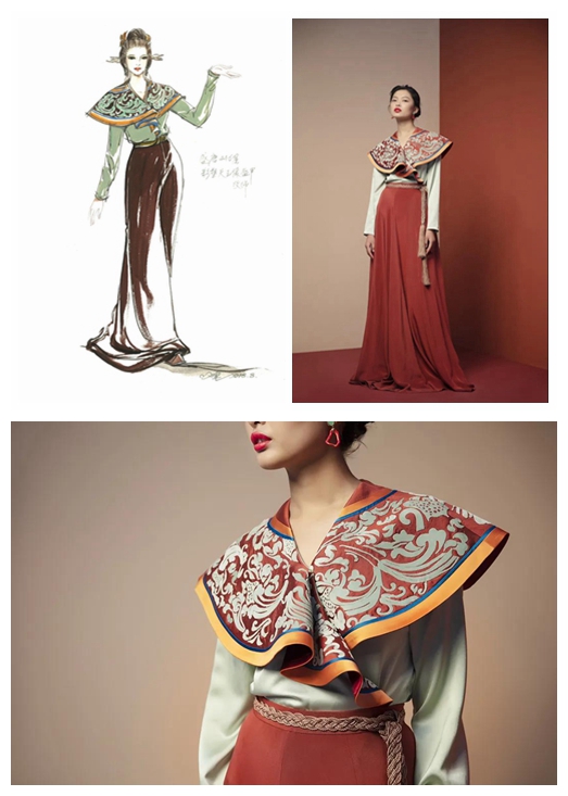 【編者按】唐代社會經(jīng)濟(jì)發(fā)達(dá),文化藝術(shù)空前繁榮,是敦煌石窟藝術(shù)發(fā)展的鼎盛時(shí)期,也是佛教文化空前活躍并與當(dāng)時(shí)生活、藝術(shù)結(jié)合最為緊密的時(shí)期。社會的開放和中外文化的交流,表現(xiàn)在服飾上尤為豐富多彩。本公眾號將陸續(xù)推出敦煌服飾創(chuàng)新設(shè)計(jì)經(jīng)典作品鑒賞,展示敦煌唐代典型裝飾紋樣如何融入當(dāng)下服飾流行時(shí)尚形態(tài),表達(dá)其傳統(tǒng)服飾文化的當(dāng)代性,尋找民族文化與現(xiàn)實(shí)生活相互關(guān)照的設(shè)計(jì)成果。