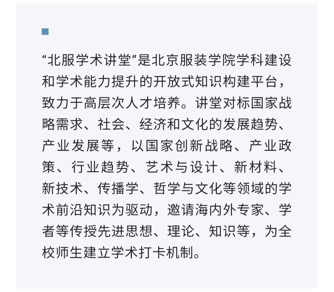 - “北服學術講堂”第三講《時尚與國際傳播能力建設》