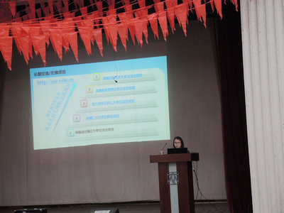 我校積極推進國際化工作,為促進國際化新型人才培養,廣泛開展國際合作與交流項目,為我校學生赴外學習搭建平臺。為了讓學生進一步了解我校公派境外交流項目,盡早做好學習規劃,國際合作與交流處近期舉行公派境外交流項目宣講會,5月7日下午,在藝術樓二層報告廳,為研究生同學舉行了公派境外交流項目宣講會,5月14日下午,在北校區大禮堂,北校區師生、輔導員參加了公派境外交流項目宣講會,兩次宣講會內容主要包括目前學校公派境外交流項目及國家相關政策,宣講會對項目情況,申請流程,院校申請要求等,以及國家留學基金委“優秀本科生國際交流項目”、“藝術類人才培養特別項目”、“國家公派碩士研究生項目”等都一一做了詳細的介紹。同學們反映強烈,宣講會后國合處為前來咨詢的同學們做了答疑。