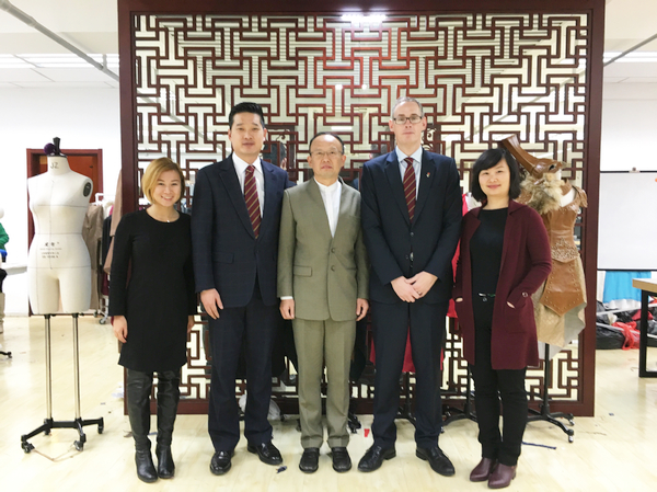 11月18日,英國卡迪夫城市大學(Cardiff Metropolitan University)國際事務發(fā)展部總監(jiān)Lloyd Powell、駐華首席代表李斌訪問我校,繼續(xù)教育學院院長史學偉、院長助理兼國際合作中心主任賈雙燕接待了來賓,項目主管余天韻帶領來訪嘉賓參觀了我院國際項目教學資源、曾設計制作APEC會議領導人著裝的高級定制中心、2022冬奧會運動裝展覽,以及時尚產業(yè)創(chuàng)新園的“土城空間”。
