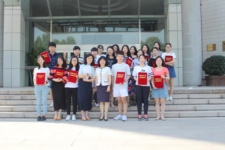 會議結束后,黨委書記馬勝杰、紀委書記蔣達峰與參會小記者們一起合影留念。馬書記對獲獎學生表示衷心的祝賀,并對記者團的工作進行了點評。他經常看學生記者的采訪報道,希望學生記者關心學校的人和事,以主人翁的精神助推學校發展。經過面試及初期考核,馬婧璇、黃澤靜、王雨桐三位同學順利通過實習期,成為記者團的正式一員。蘇部長為他們頒發了記者證、采訪本和團服。附:2016年度優秀學生記者名單潘亞娟、戰祥、高鶴、朱美靜、李雨薇、柴一純、余蘇怡、王玉敏、安然、肖娟、李詩冉、付鯖霖、蘇睿、上官弋渤、蔣明君、焦新宇、鐘禎、羅悅月、周瑞娟、楊佳佳、李帥、王志偉、李偉杰、張曄(共24人)
