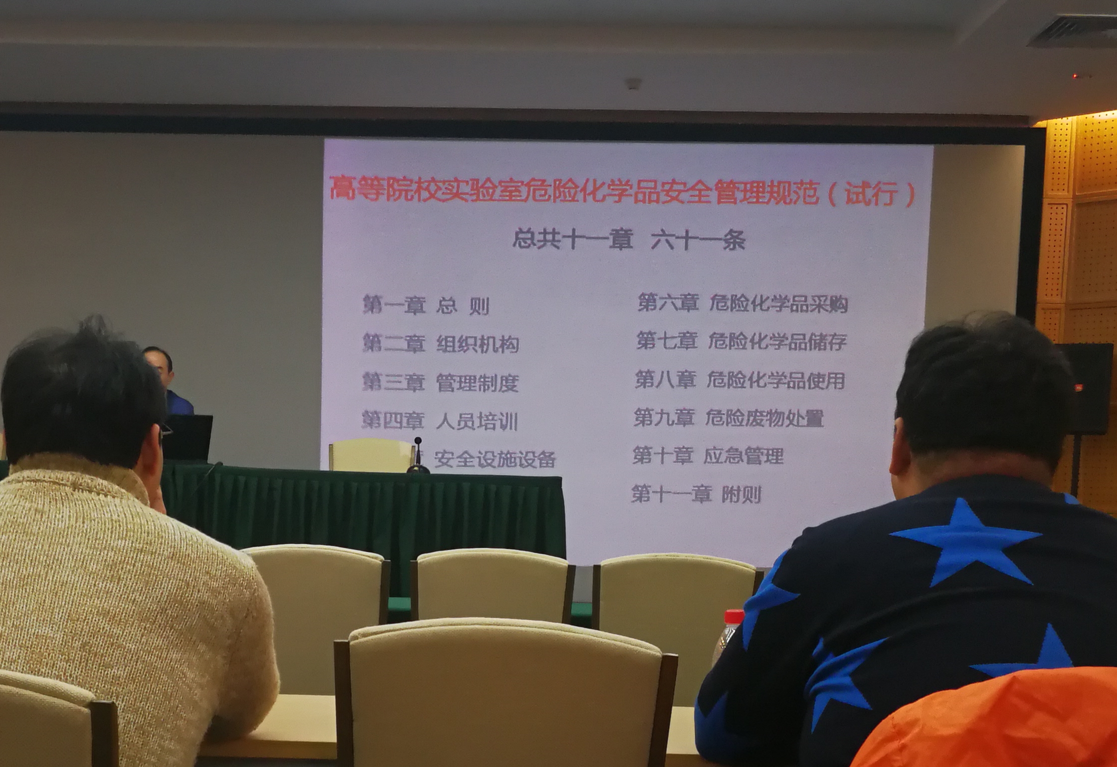 我校與會教師認真聽取培訓(xùn)會精神,培訓(xùn)會的召開為北京市高等院校實驗室安全統(tǒng)一管理做好鋪墊,為我校實驗室今后安全管理,尤其是危險化學(xué)品管理提供了清晰思路和理論支持。