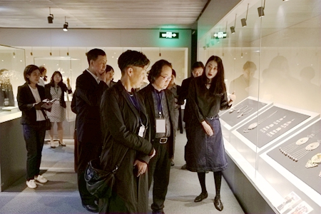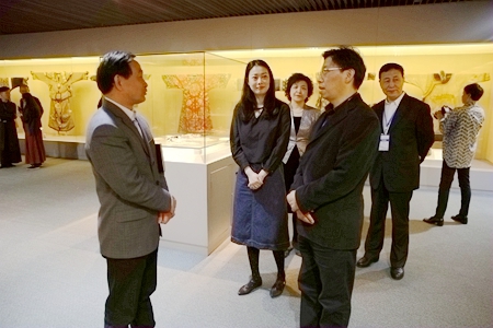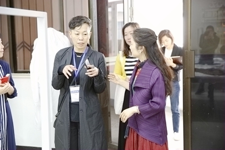 展廳參觀結束后,專家組山東藝術學院設計學院院長荊雷教授走訪了民族服飾博物館紡織品文物修復室,調查了修復室的基本情況和對在校生專業培養方面所做的工作。
