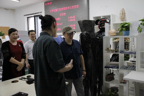 隨后,相關人員陪同周星教授參觀了大學生創新創業實踐中心、勤工助學中心、企業孵化工作室以及咖啡書屋。在創業實踐中心,周星教授對學生自己設計制作的《北服青年資訊》十分感興趣;在企業孵化室,周星教授對學生的創新創業能力表示肯定。