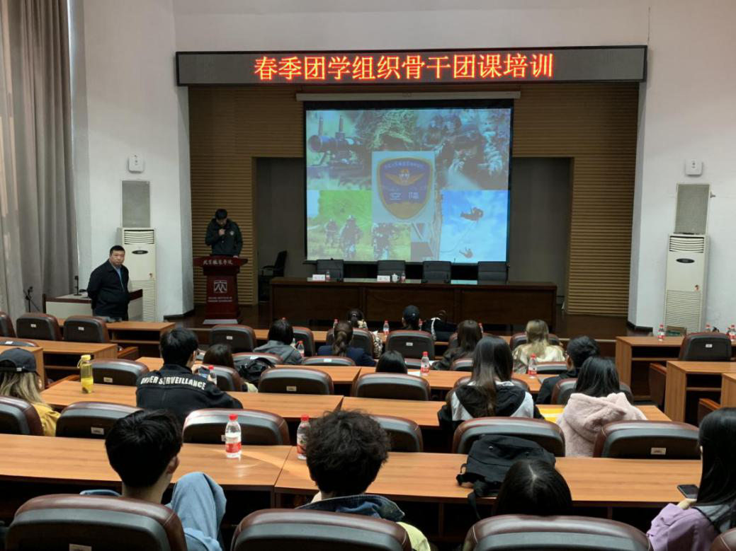 為宣傳好、學習好、貫徹好“兩會”精神和習近平新時代中國特色社會主義思想,加強我校團學干部隊伍建設,切實提升青年骨干的政治意識、組織意識和模范意識,培養一批富有朝氣、充滿活力、有作為、 敢擔當的團學骨干隊伍,3月23日,團委組織開展了以“青春心向黨 建功新時代”為主題的團課培訓。團委直屬部門部長、副部長,校學生會主席團成員、各二級學院團總支副書記、學生會主席等學生骨干參加了本次活動。