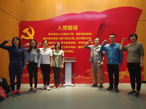 在黨旗前,黨員們重溫了入黨誓詞。在莊嚴的宣誓中,黨員們感受到不忘初心、堅定前進的信心和力量。