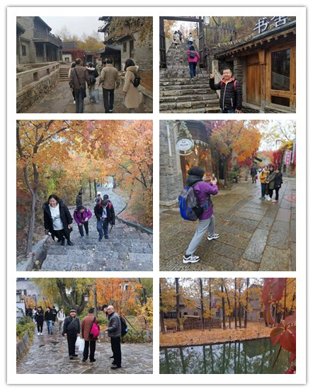 古北水鎮(zhèn)位于北京市密云縣古北口鎮(zhèn),背靠中國最美、最險的司馬臺長城,坐擁鴛鴦湖水庫,是京郊罕見的山水城結(jié)合的自然古村落,有“北方烏鎮(zhèn)”之美稱。此時的古北水鎮(zhèn),秋意正濃。整個小鎮(zhèn)層林盡染,紅葉綻放,滿墻紅透了的爬山虎為這小鎮(zhèn)換上了秋裝。沿石路前行,司馬小燒,觀賞制酒流程工藝,永順染坊,感受原汁原味的生態(tài)印染,英華書院,經(jīng)史子集盡含其內(nèi),水榭回廊中,品一盞香茗,賞幾段文字,盡享秋日的美景。在活動中,大家結(jié)伴前行,歡聲笑語,興致勃勃,沿著淙淙河道,觀賞北方難得一見的江南水鄉(xiāng)風(fēng)貌。大家時而駐足拍照,時而暢談體會,相互之間還不忘交流工作和生活近況、展望未來。