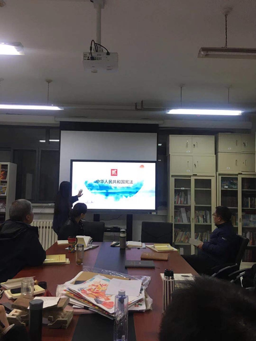 11月28日下午,思想政治理論課教學部全體教職工在部門會議室集體學習了《中華人民共和國憲法》。付婉瑩老師從憲法的發展過程、基本原則、規定的基本制度、主要內容等幾方面為大家做了導讀。通過學習,大家更為清晰深入地了解了憲法相關知識,明確了維護憲法權威的重要性,增強了建設中國特色社會主義法治社會的信心。