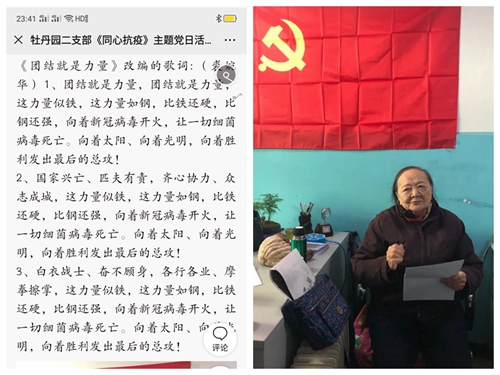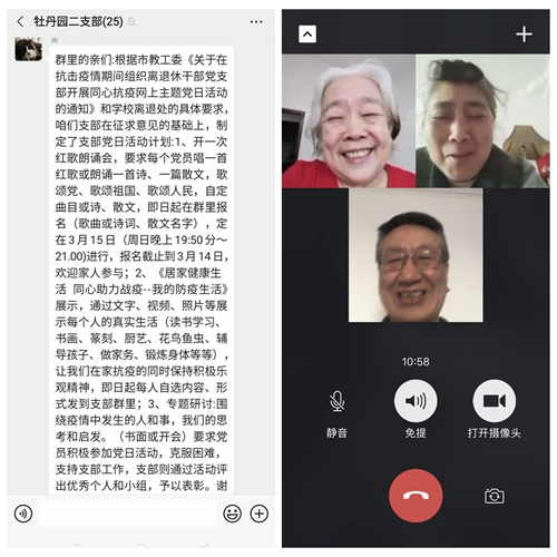 根據(jù)市委教育工委《關(guān)于在抗擊疫情期間組織離退休干部黨支部開展同心抗“疫”網(wǎng)上主題黨日活動(dòng)的通知》和離退休黨委要求,牡丹園第二黨支部組織支部全體黨員借助支部微信群,以“同心抗疫”為主題,開展了一次別開生面的線上紅歌朗誦會(huì)主題黨日活動(dòng)。