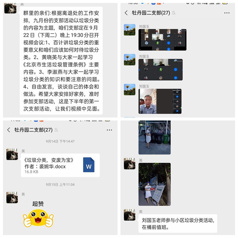 按照市委教育工委、校黨委工作要求,離退休黨委以垃圾分類為切入點,鼓勵老同志積極參與到首都社會治理工作中。5月份起,通過各類微信群、公眾號開展垃圾分類知識的學(xué)習(xí)、宣傳,動員老同志積極參與垃圾分類工作。9月份起,各支部通過屬地微信群、個人微信、走訪老同志等形式與全校650名老同志簽訂了垃圾分類承諾書。