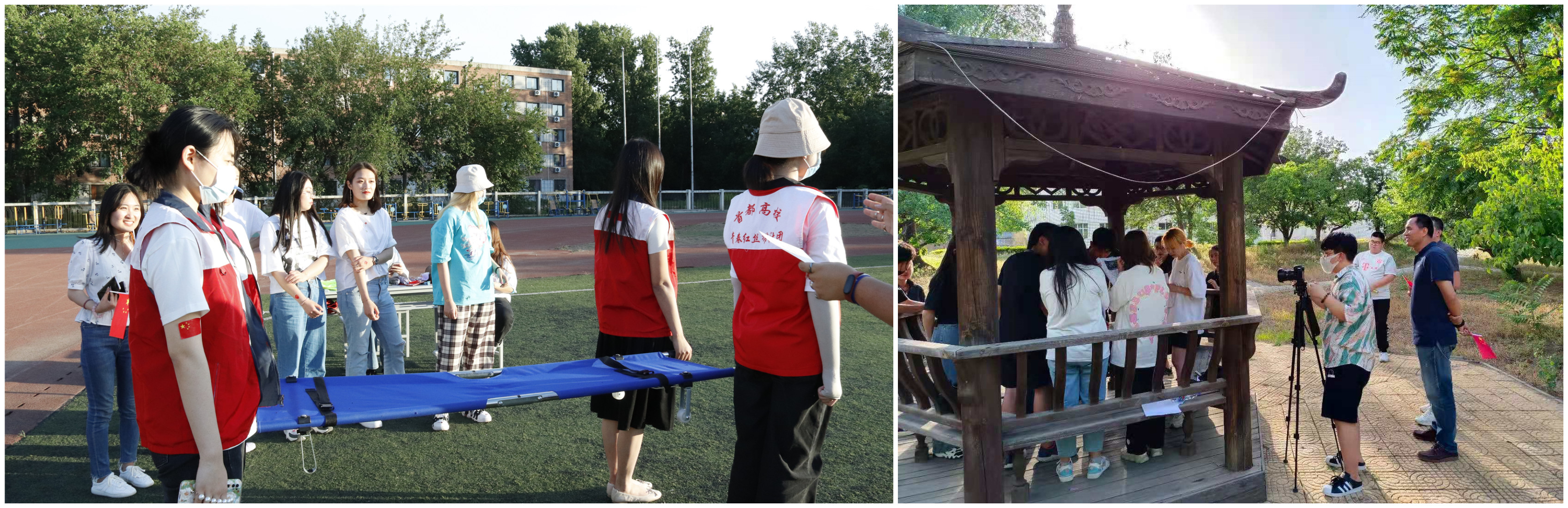 活動過程中,同學們摩拳擦掌,為了團隊榮譽積極應戰。在“星星之火”和“典藏記憶”打卡點,大家運用豐富的黨史知識儲備,回答黨史問題,根據繪畫和照片講解黨史故事,深刻感受到了我黨在百年歷程中的艱辛與不易;在“光榮使命”、“同舟共濟”環節,大家在紅十字會同學們的指導下學習擔架的使用技巧,齊心協力轉移“傷員”,團結協作艱難“渡河”,體會到了紅軍戰士們的堅韌毅力與頑強的團隊精神;而在“赤誠旋律”打卡點,大家重溫經典音符,在翠綠掩映的長亭中,揮舞手中小紅旗唱響了共產黨人的精神力量;最后,大家來到“時空寄語”打卡點,紛紛留下對革命前輩的寄語和活動過程中的心得感悟......